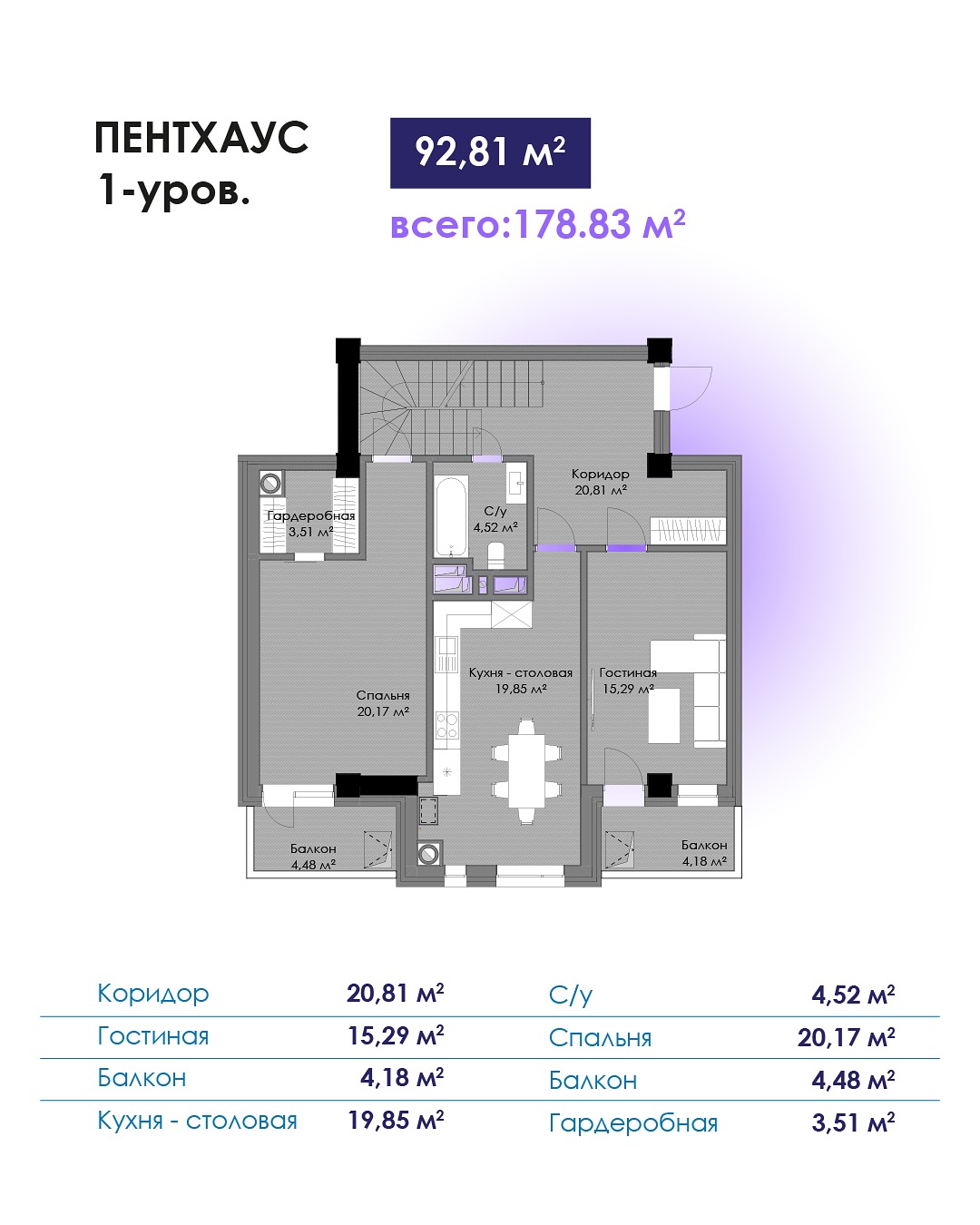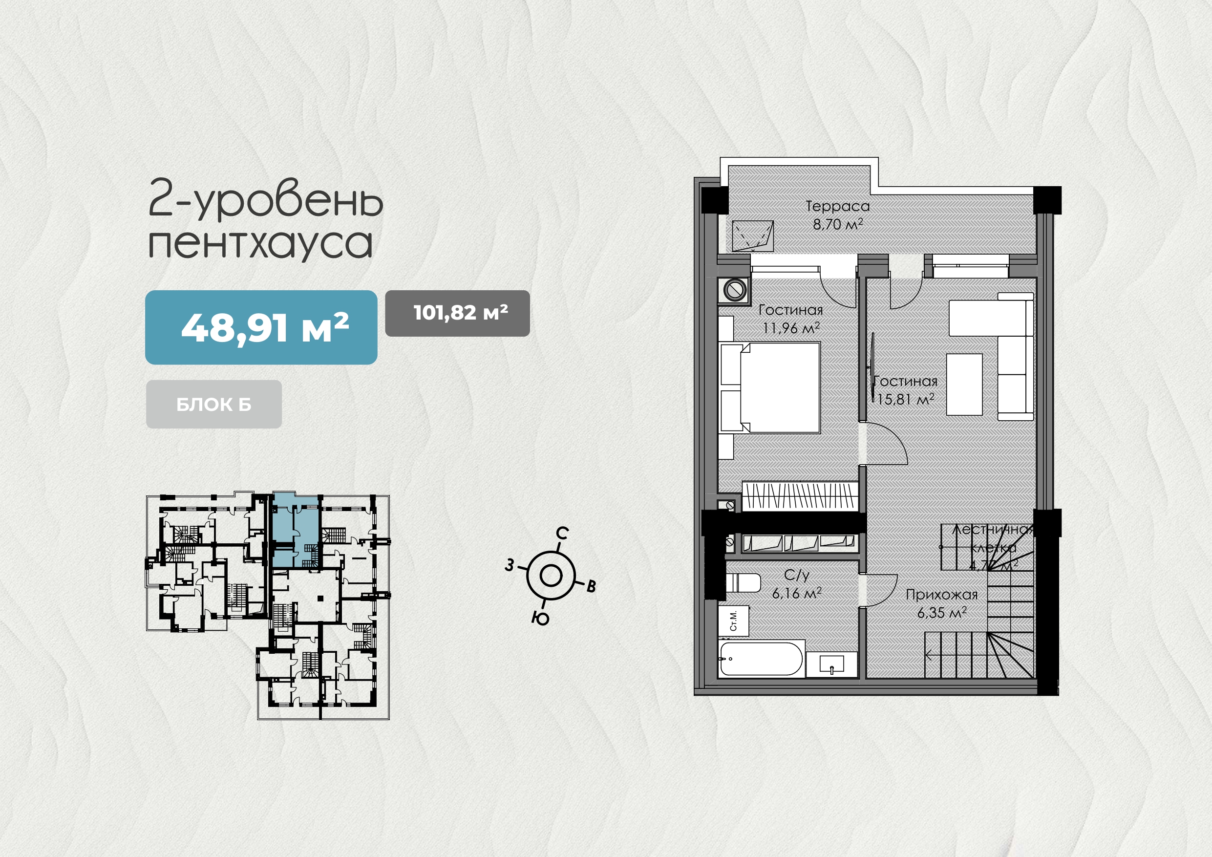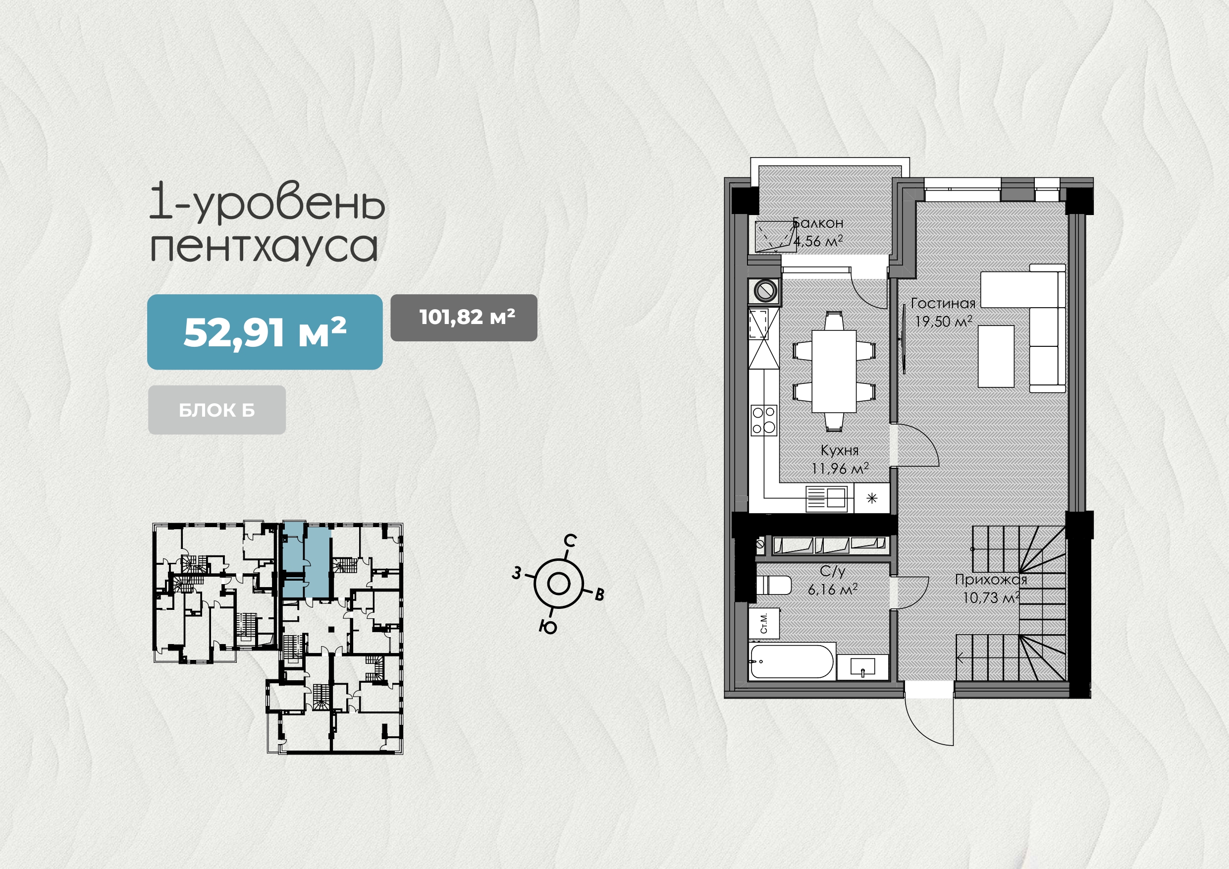 Главная особенность дома — эксклюзивный двухуровневый пентхаус с собственной террасой, где открытое пространство становится продолжением интерьера и идеальным местом для отдыха, встреч и панорамных видов.