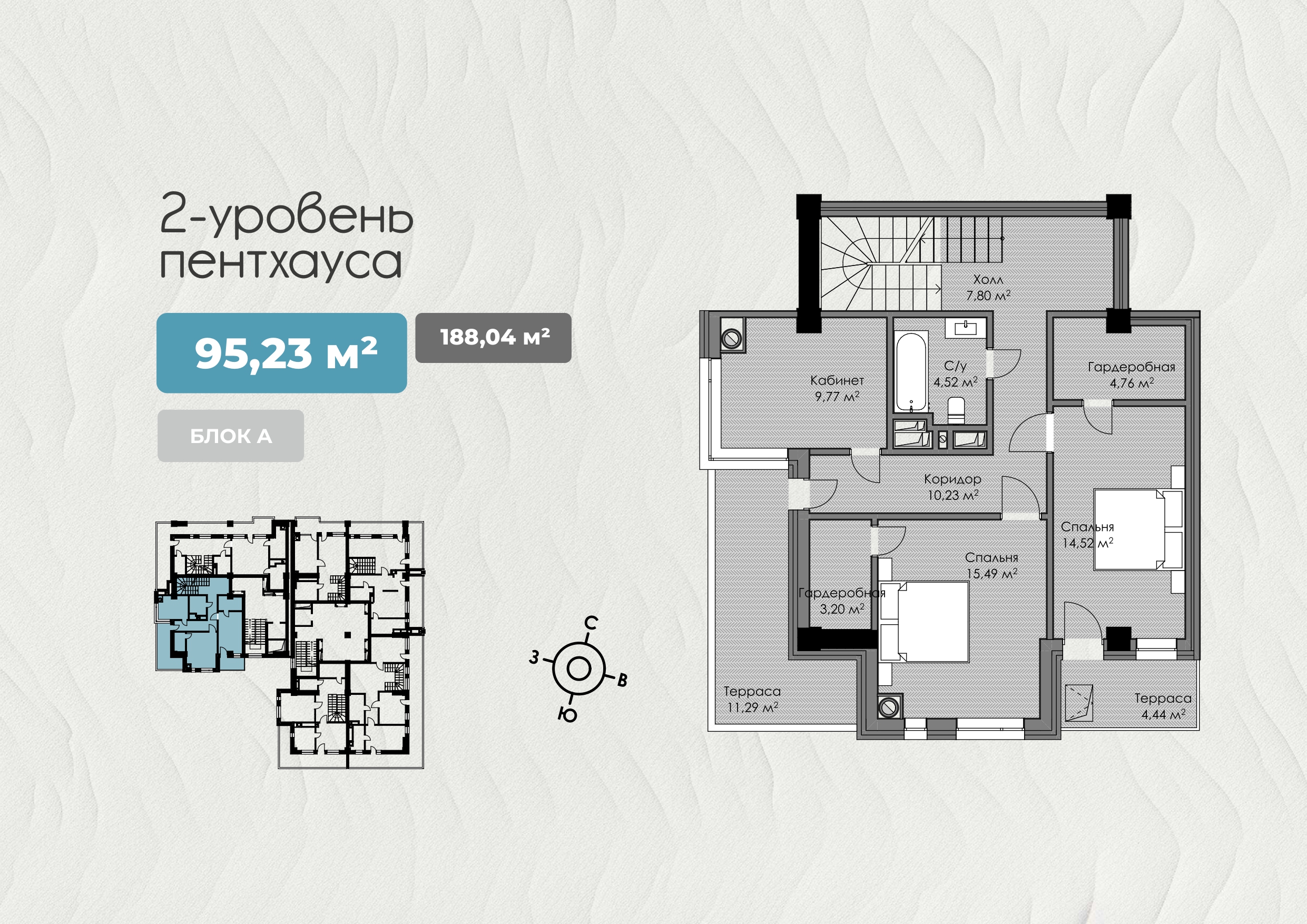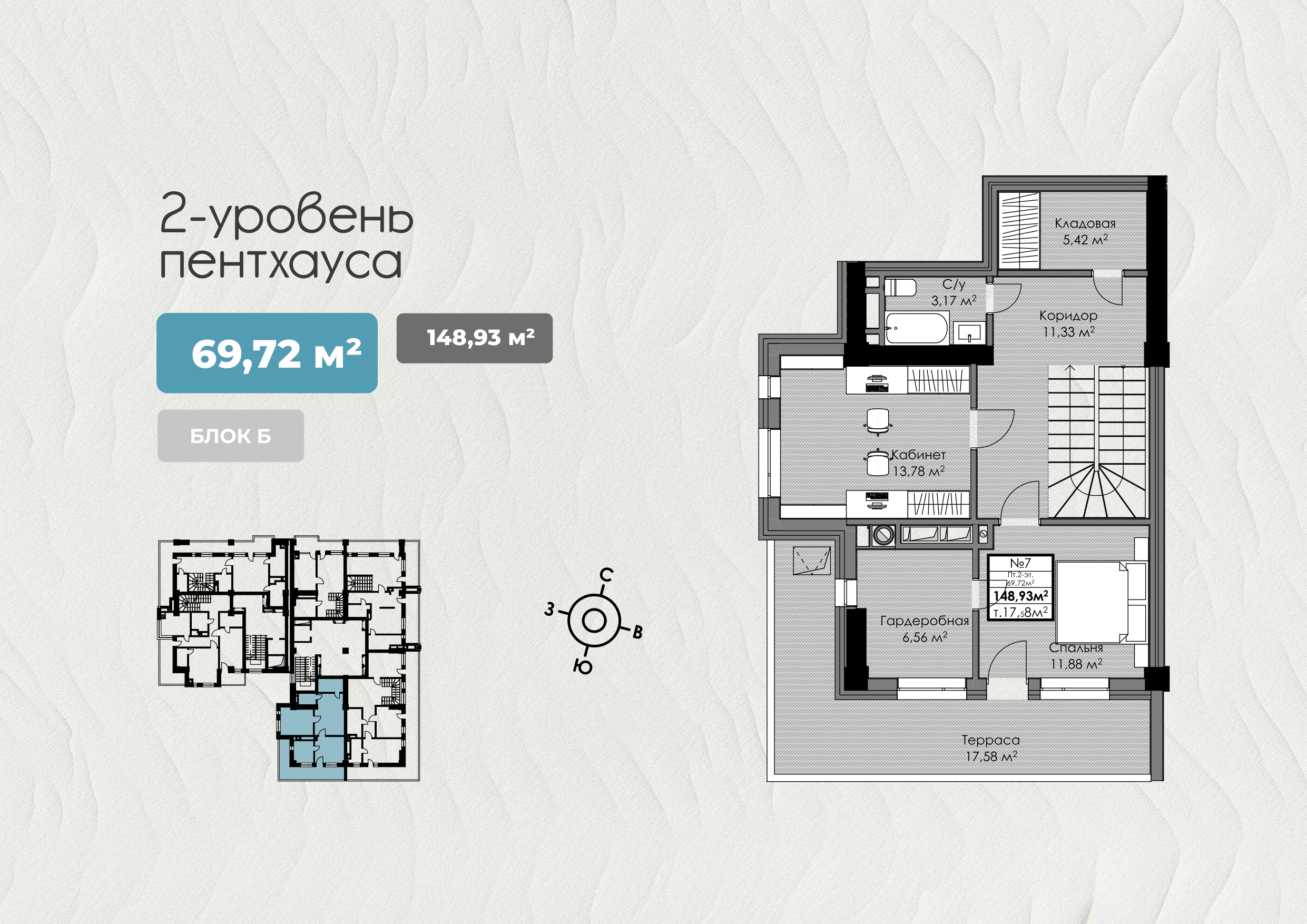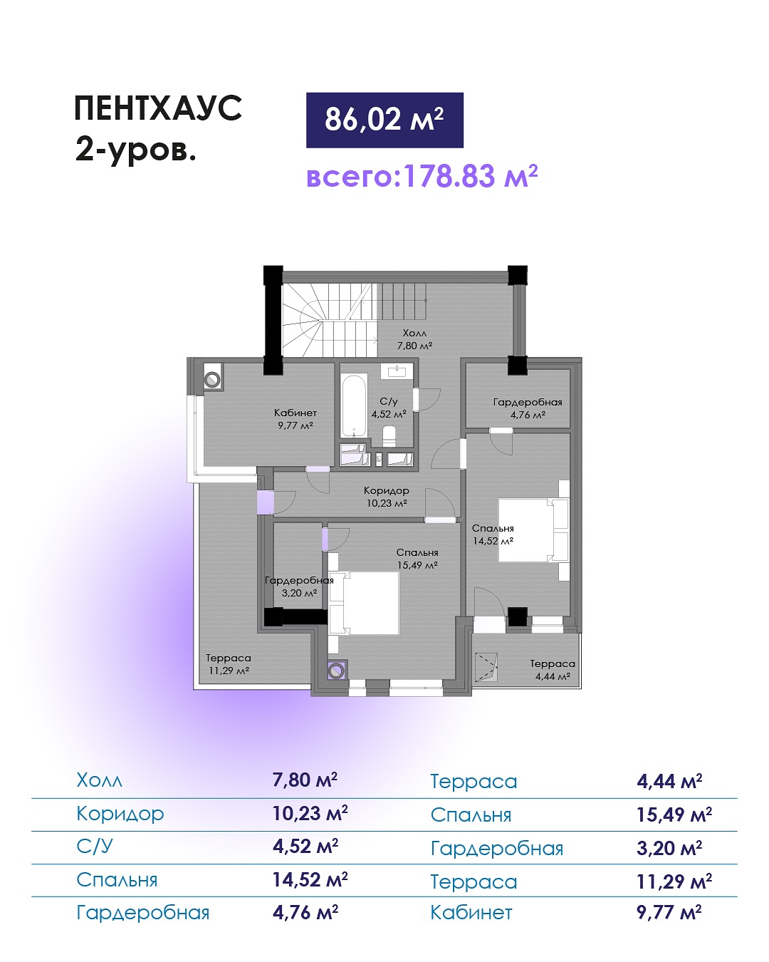 Главная особенность дома — эксклюзивный двухуровневый пентхаус с собственной террасой, где открытое пространство становится продолжением интерьера и идеальным местом для отдыха, встреч и панорамных видов.