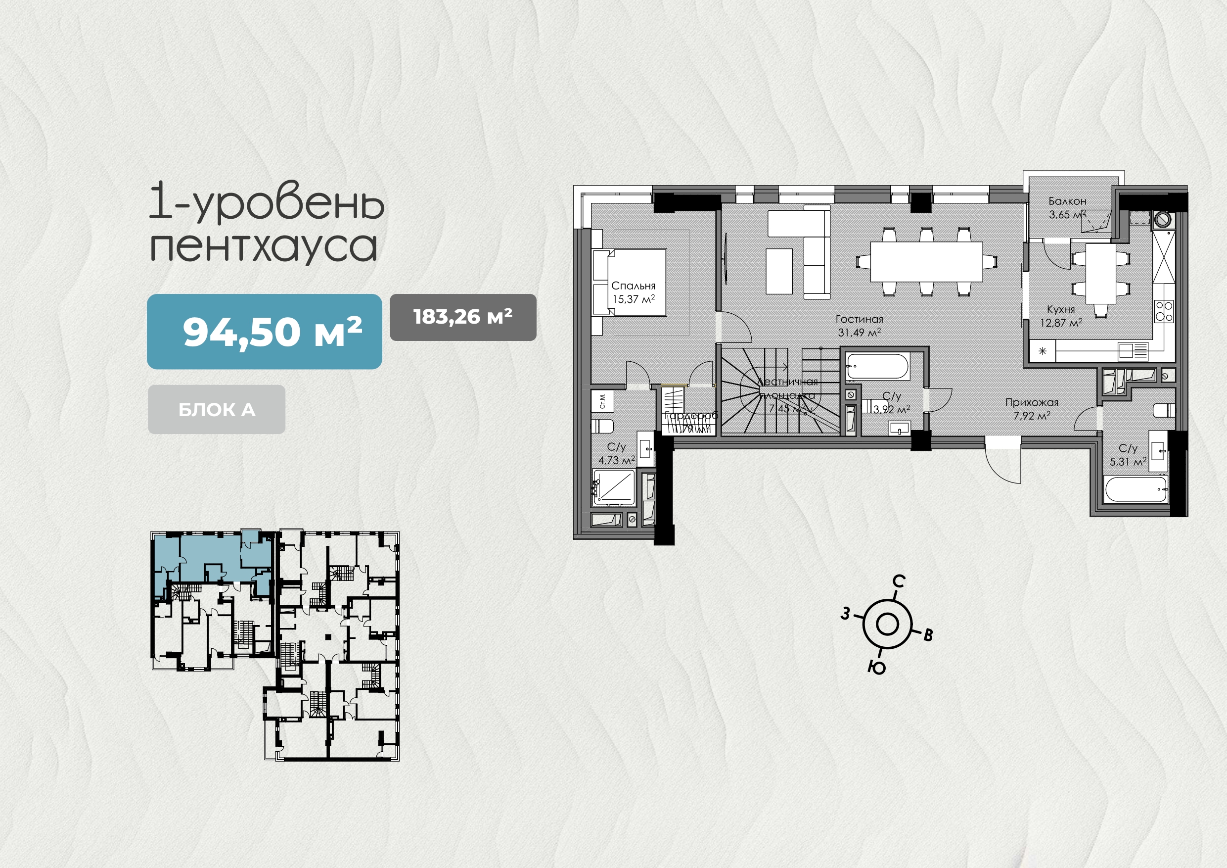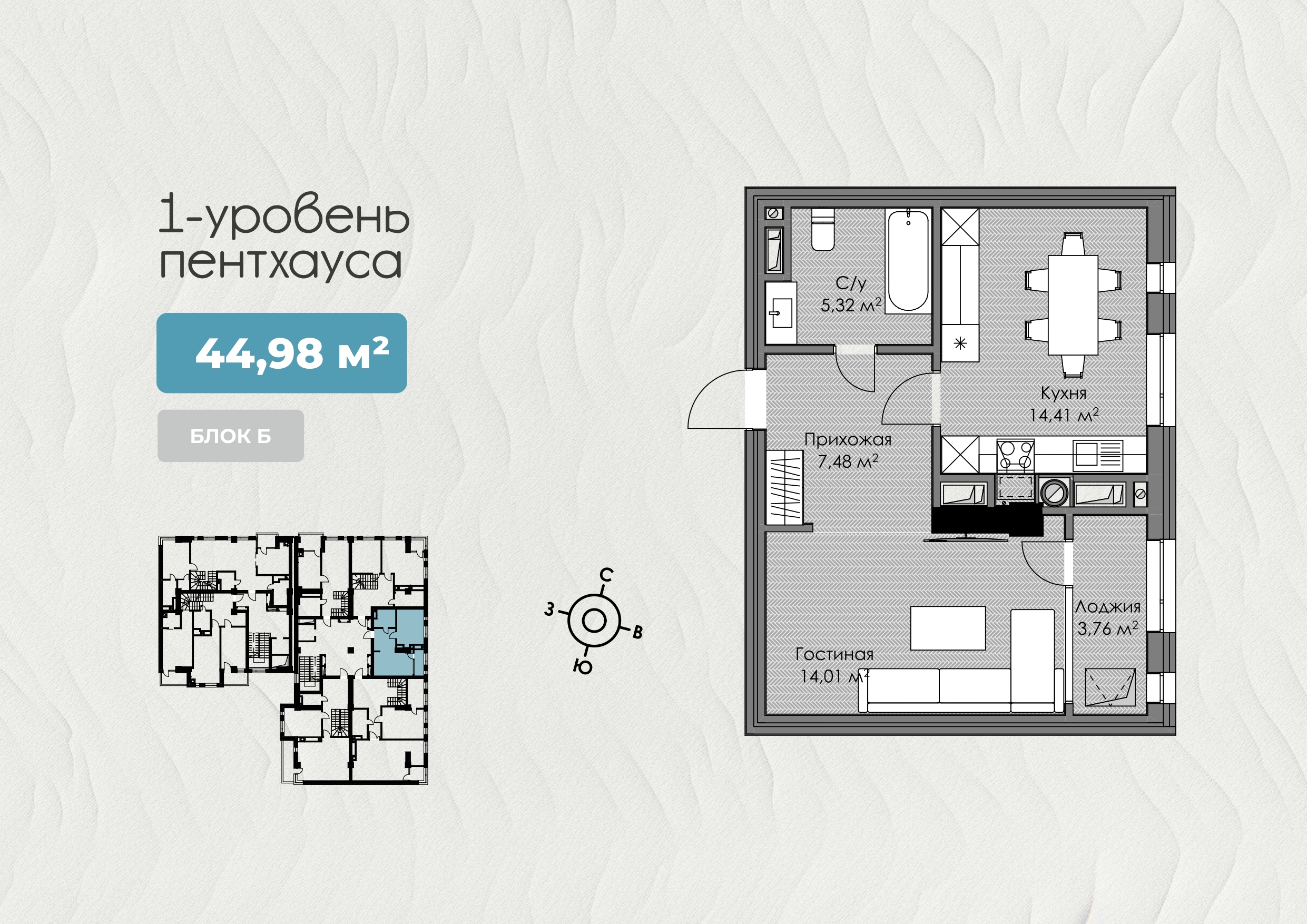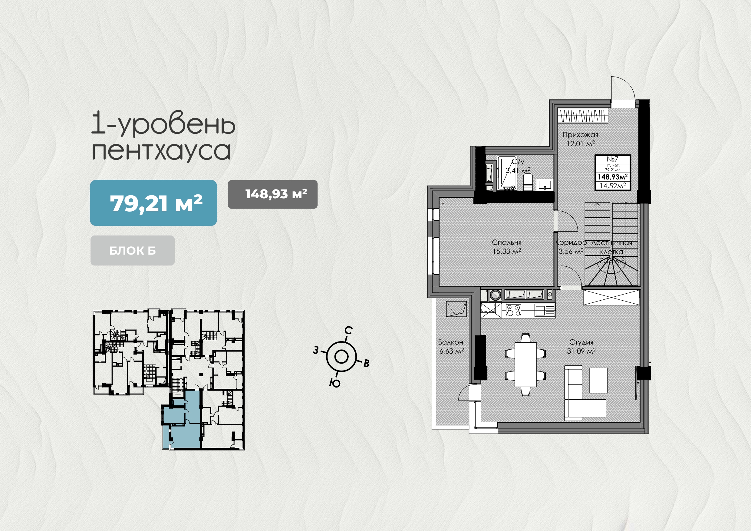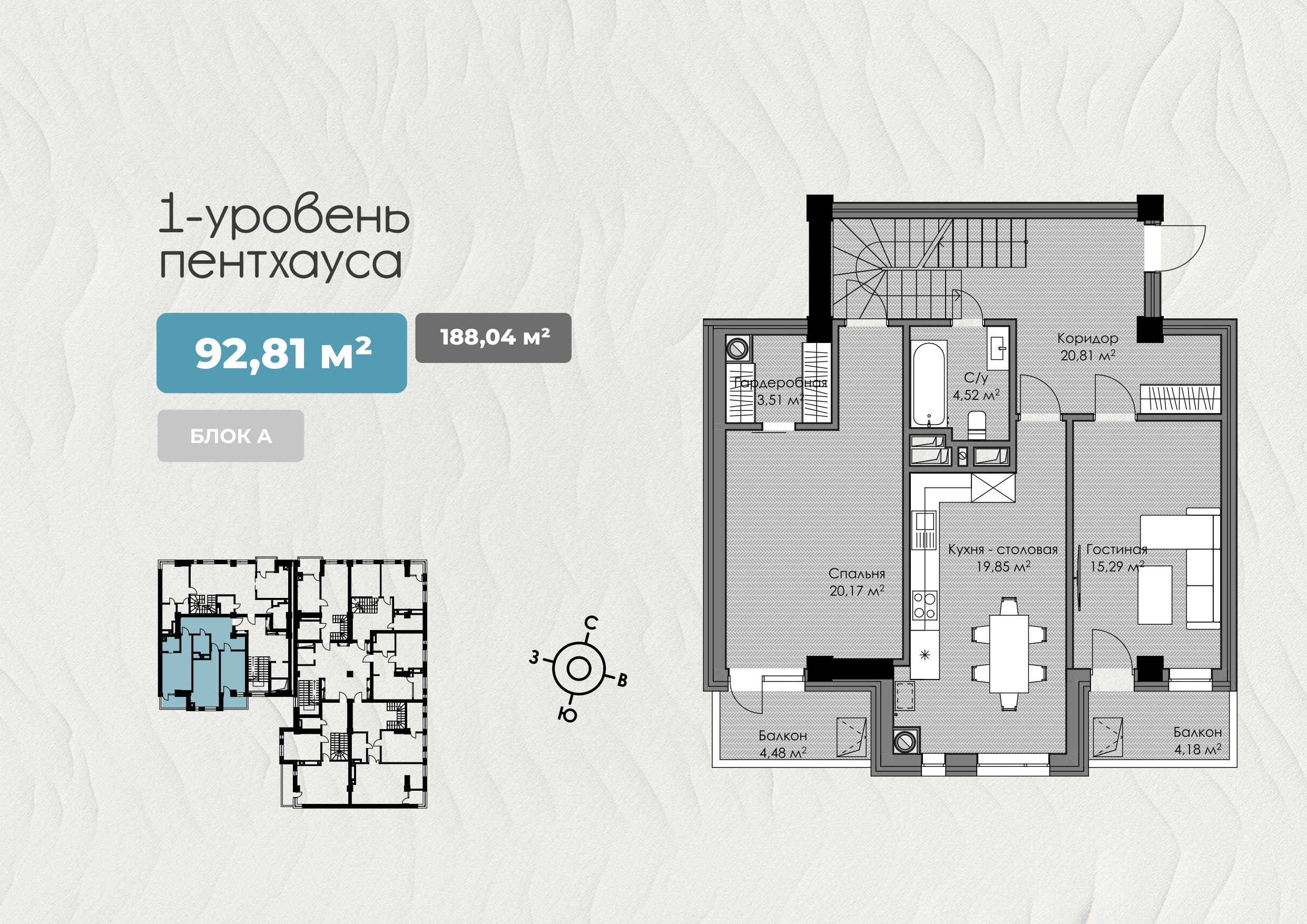 Приятный бонус для владельцев пентхауса - машиноместо в паркинге и келлер в подарок, что подчёркивает премиальный подход и заботу о комфорте резидентов.